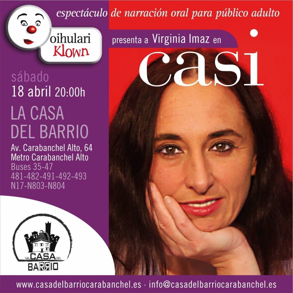 Sábado 18 de abril 20:00h «Narración oral para público adulto. Virginia Imaz en Casi»