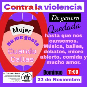 Con motivo de la conmemoración el 25 de noviembre la casa del barrio y las mujeres sin miedo realizaremos diferentes actividades, a las que estás invitada.