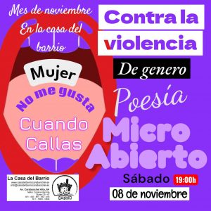 Con motivo de la conmemoración el 25 de noviembre la casa del barrio y las mujeres sin miedo realizaremos diferentes actividades, a las que estás invitada.